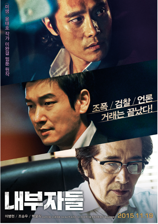영화 <내부자들> 윤태호 작가가 인터넷 웹툰에서 연재해서 인기 몰이를 한 만화로 정치, 재벌, 언론 들이 어떻게 이 나라에서 활동하고 국민들을 어떻게 조롱하고 있는지를 적나라하게 보여주는 작품으로 영화도 나온다는 이야기에 바로 영화관으로 달려가 관람을 하였습니다. 두말할 것 없는 배우 조승우, 이병헌, 백윤식 출현 또한 나의 마음을 영화관으로 이끌었습니다.
