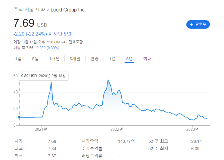 루시드 관계자는 "지금으로서 한국 출시 여부는 말할 수 없다. 추후 한국 출시 가능성이 있을지도 모르겠으나. 지금은 미국과 유럽 시장에 집중하고 있다"라고 했습니다. 당연한 이야기를 하고 있다. 대량 생산이 안 되는데 어떻게 다른 나라에 수출을 할 수가 있겠는가? 미국 수요도 감당하지 못하고 있는 상황인데...