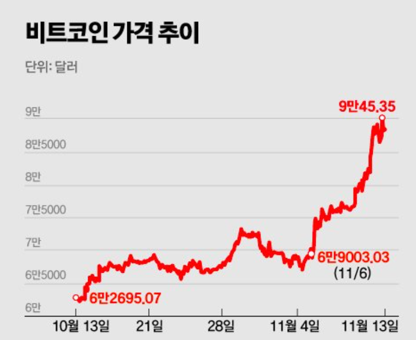 비트코인이 또다시 역사를 새로 썼습니다. 11월 20일, 비트코인은 한때 94,900달러대까지 상승하며 전날 기록한 사상 최고가 94,076달러를 단 하루 만에 갱신했습니다. 이는 비트코인의 강세가 여전히 지속되고 있음을 보여줍니다.
