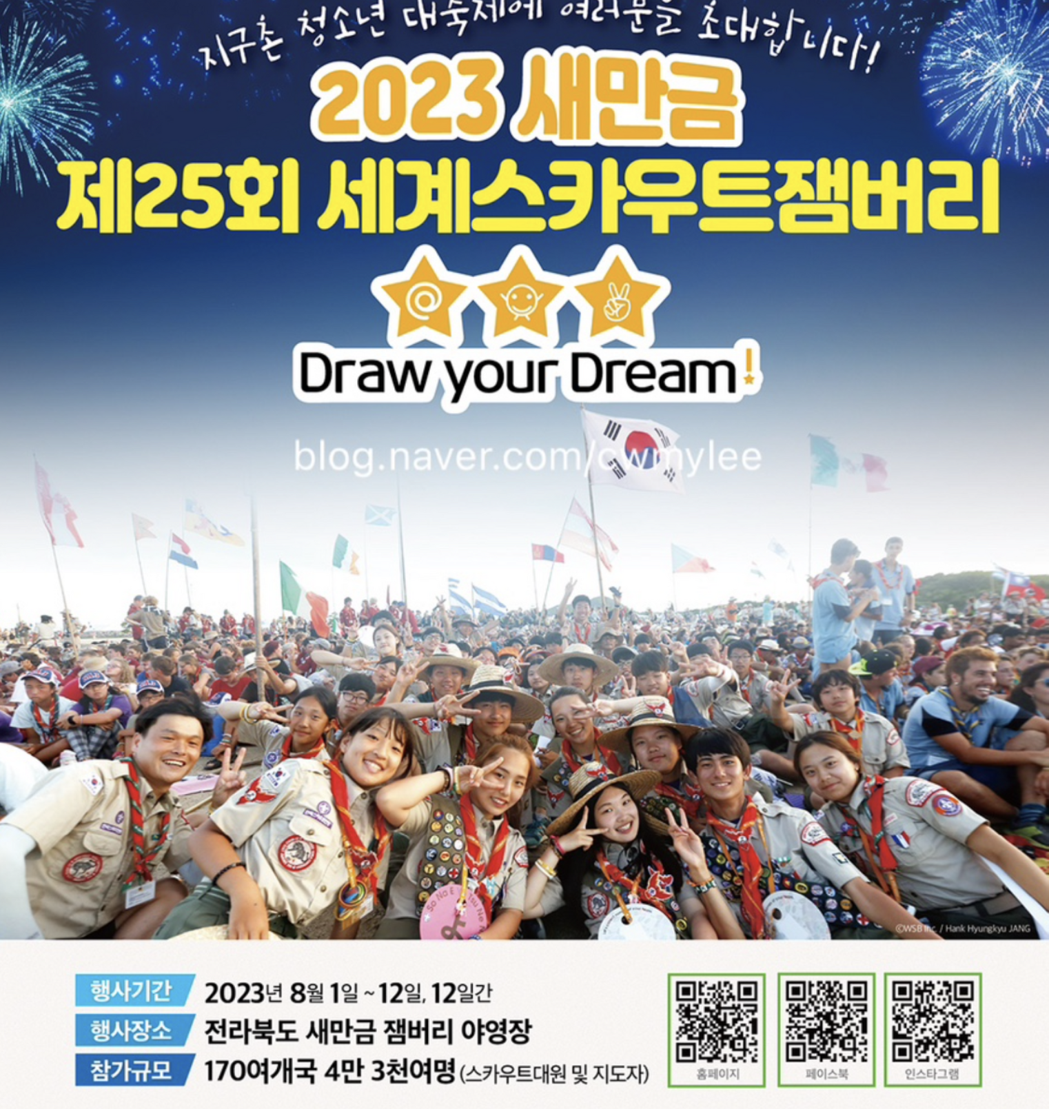 올해 25회 세계스카우트 잼버리 대회가 대한민국 전북 부안군 새만금에서 개최가 되었습니다. 뜨거운 온도가 기승을 부리고 있는데 전 세계에서 모인 4만 3000여 명의 스카우트 안에서 첫날 야영지에서 온열질환자가 약 400명이나 발생했다고 하네요.