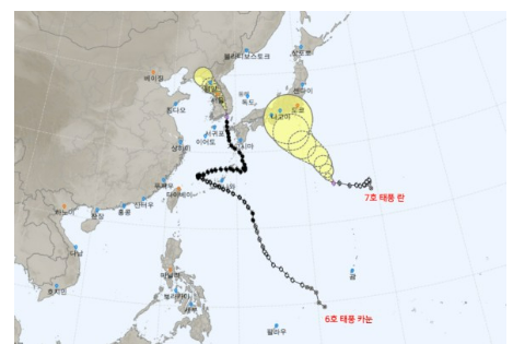 태풍 카눈에 이어 7호 태풍 란도 일본 열도를 관통하고 있다는 소식입니다. 한반도와 일본 모두 태풍 영향권에 있는 상황입니다.
