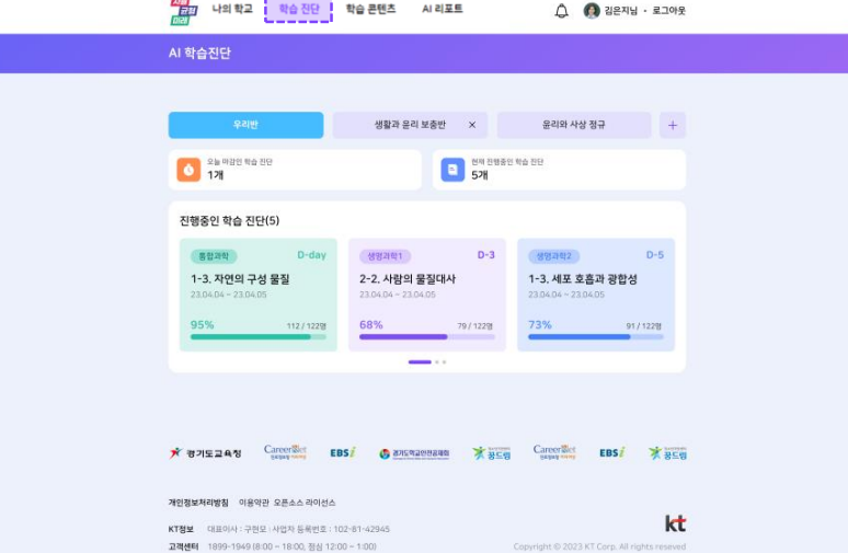 - 학생 맞춤형 교육: AI 학습 진단을 통해 각 학생의 학습 수준을 평가하고, 그에 맞는 콘텐츠를 추천합니다.