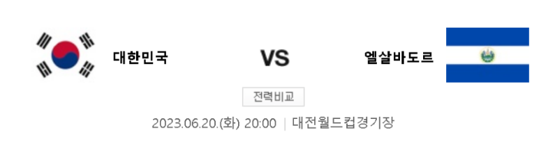 대한민국 vs 엘살바도르: 6월 20일 화요일 대전원드컵 경기장