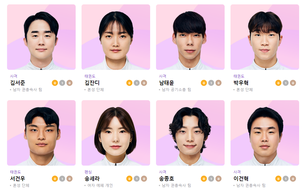 아래는 항저우 아시안게임에서 메달을 획득한 선수님들의 사진입니다. 모두 기억은 못하지만 그래도 자랑스러운 얼굴 한번 감상하세요.
