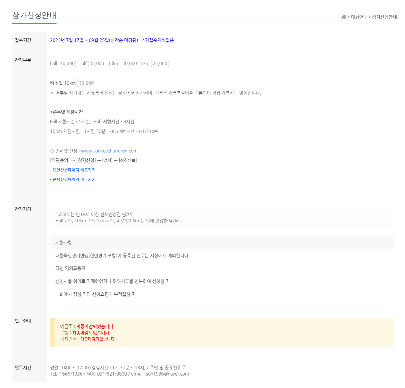 2023년 손기정 마라톤 대회의 참가자격은 만 19세 이상입니다. 참가비는 하프마라톤 5만원, 10km 3만원, 5km 2만원입니다.