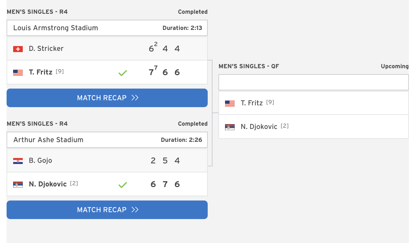 위에 대진표를 보면 알수 있듯이 이번에는 2023US오픈 테니스이라서 그런지 미국선수만 3명이나 진출했습니다. 모두들 아직 20대 초반의 어린 선수들이라서 앞으로의 미국 테니스가 기대가 되는 한 장면을 볼 수 있었습니다. 다만 어떤 결과를 낼 수 있을지가 미지수이고 모두들 알고 있다시피 우승자는 한 명이라는 사실입니다.