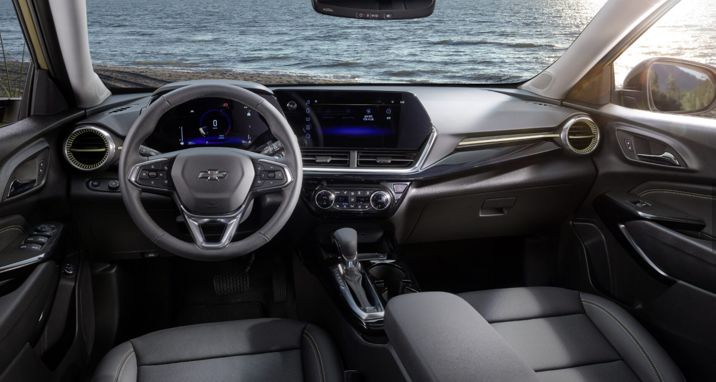 2024년 쉐보레 트랙스 크로스오버의 실내는 여유로운 실내 공간과 편의 사양을 갖추고 있습니다. 2열 시트는 6:4 분할 폴딩이 가능하여 다양한 용도로 활용할 수 있습니다. 기본 사양으로 7인치 디지털 계기판, 8인치 터치스크린 인포테인먼트 시스템, 스마트폰 무선 충전 기능 등이 제공됩니다.