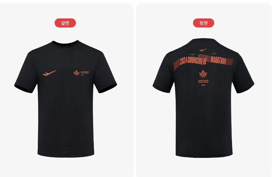 2024년 춘천마라톤은 아름다운 자연 속에서 펼쳐지는 도전과 성취의 장으로, 많은 러너들이 기다리는 특별한 이벤트입니다. 이번 대회에서는 참가자들에게 특별한 기념품이 제공됩니다. 바로, 세련된 디자인의 검은색 티셔츠입니다.