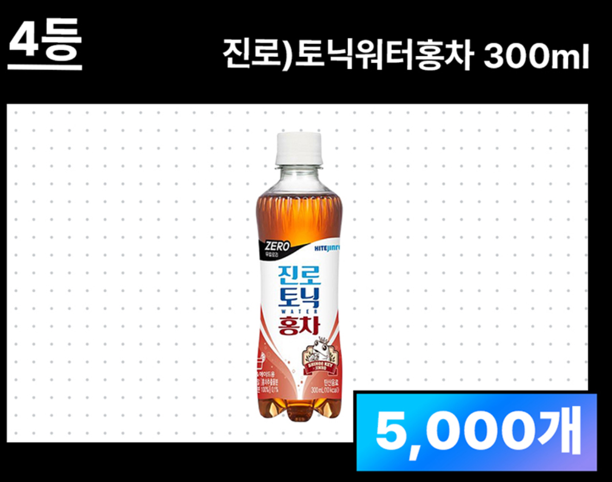 | 4등 | 진로) 토닉워터홍차 300ml (5,000개) |