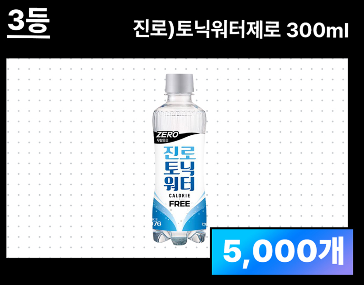 | 3등 | 진로) 토닉워터제로 300ml (5,000개) |
