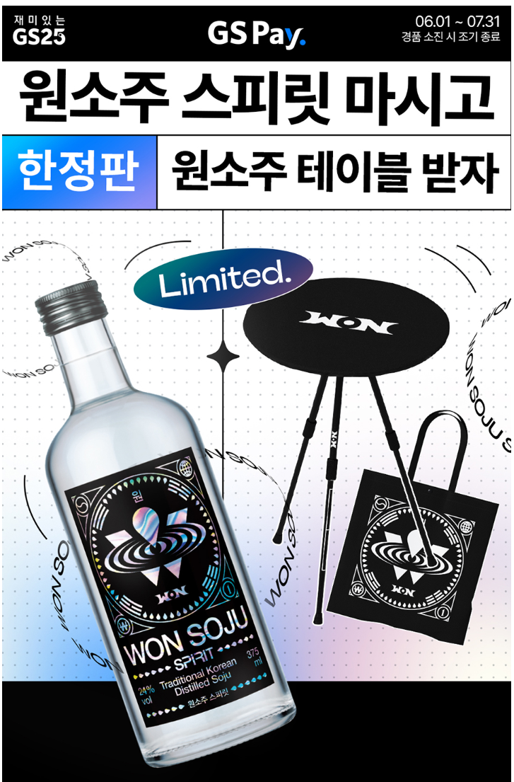GS25 7월 이벤트 '원소주 스피릿 마시고 원소주 테이블 세트 받자'