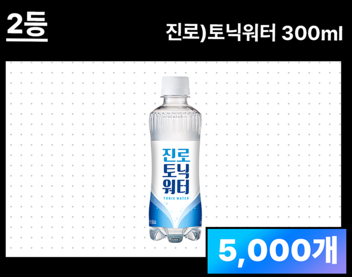 | 3등 | 진로) 토닉워터제로 300ml (5,000개) |